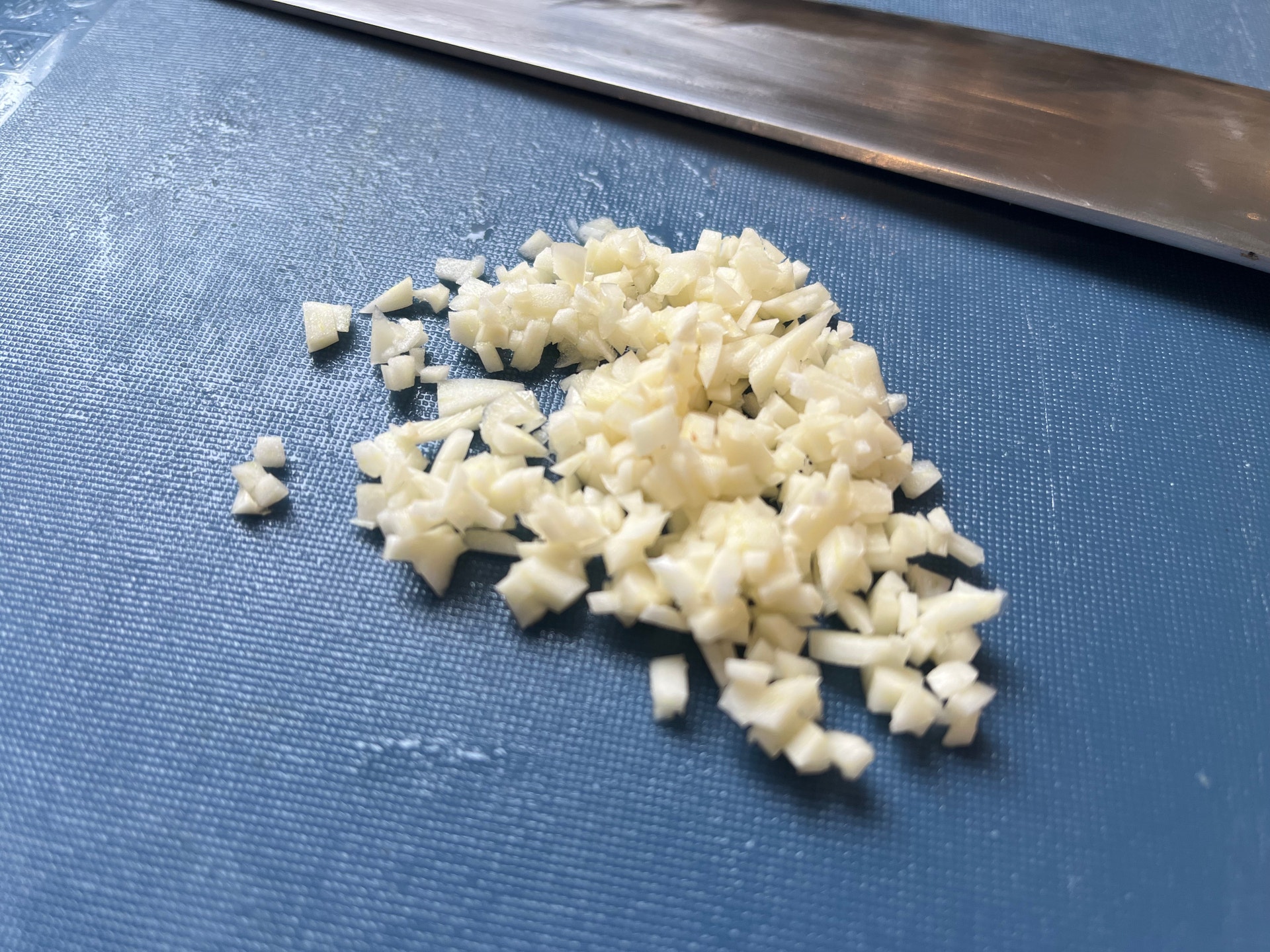 今回は丁寧に切り揃えるというより、ざっくりと。家庭料理っぽい雰囲気にしたいので大きさは揃えなくて大丈夫です。細かくみじん切りが細かいみじん切りが苦手だなぁと言う方には、朗報です!笑