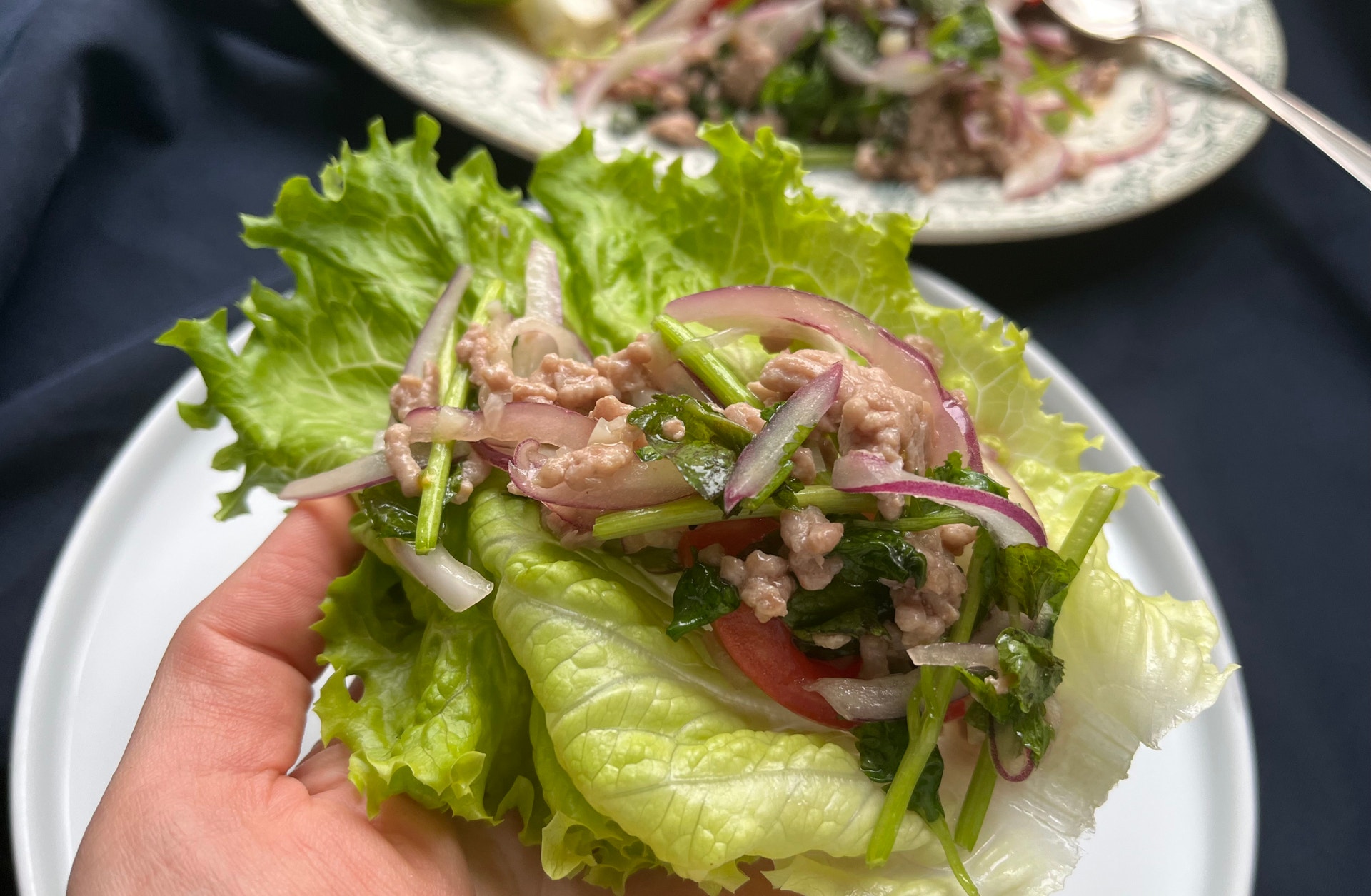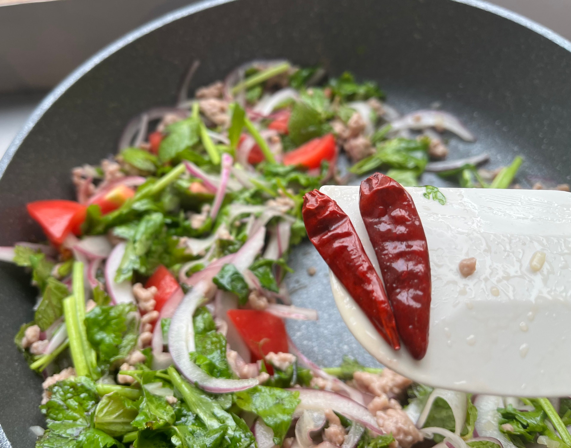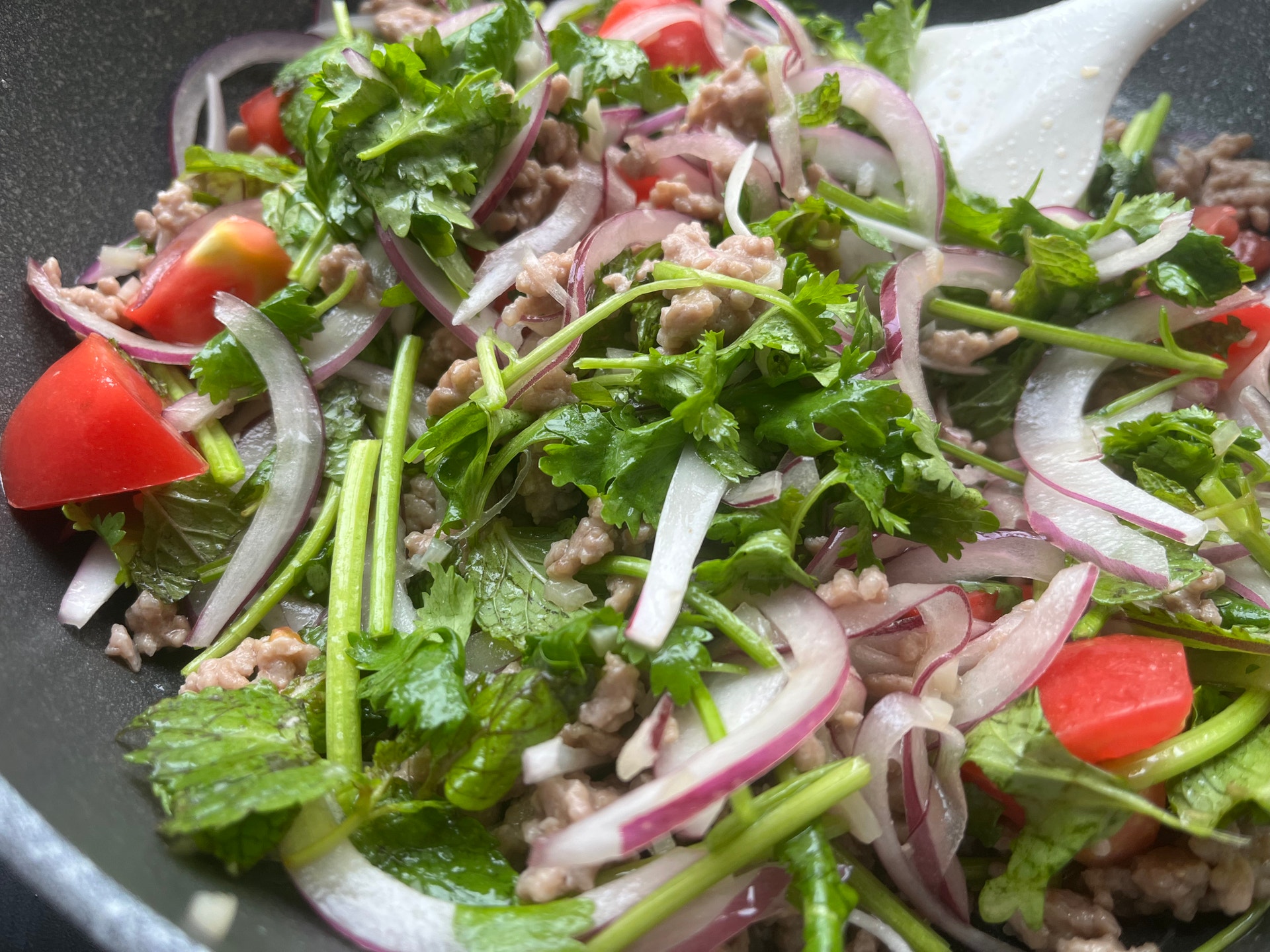 今回ご紹介したレシピでは豚ひき肉を使っているので「ラープ・ムー」です。