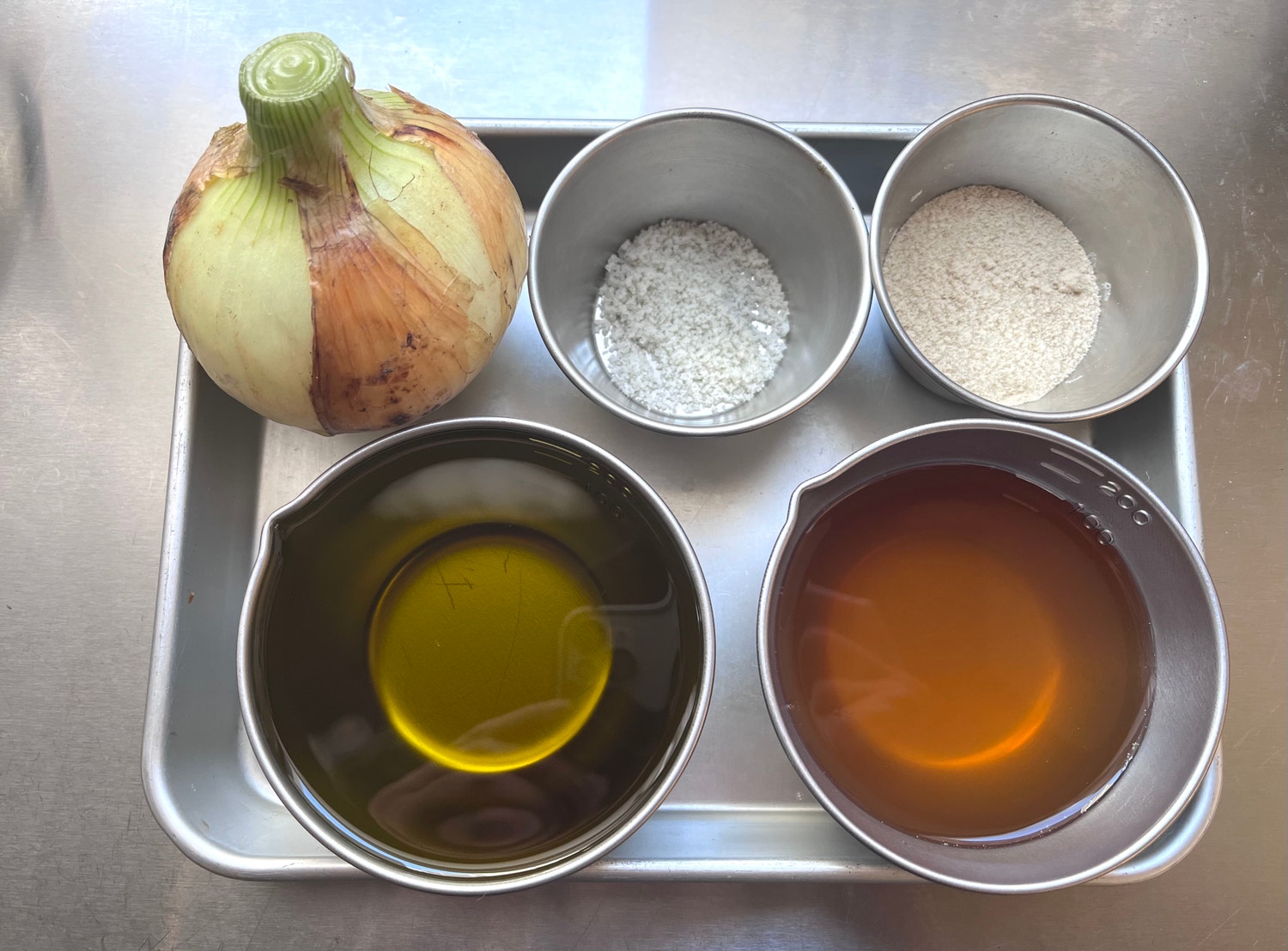 ※フードプロセッサーやハンディブレンダーでも作れます。とても便利な機械ですが、食材に摩擦熱が加わり品質が低下すると折角の新玉ねぎが可哀想なので、今回はゆっくり手ですりおろすレシピを紹介します(作り方はお任せしますよ)。
