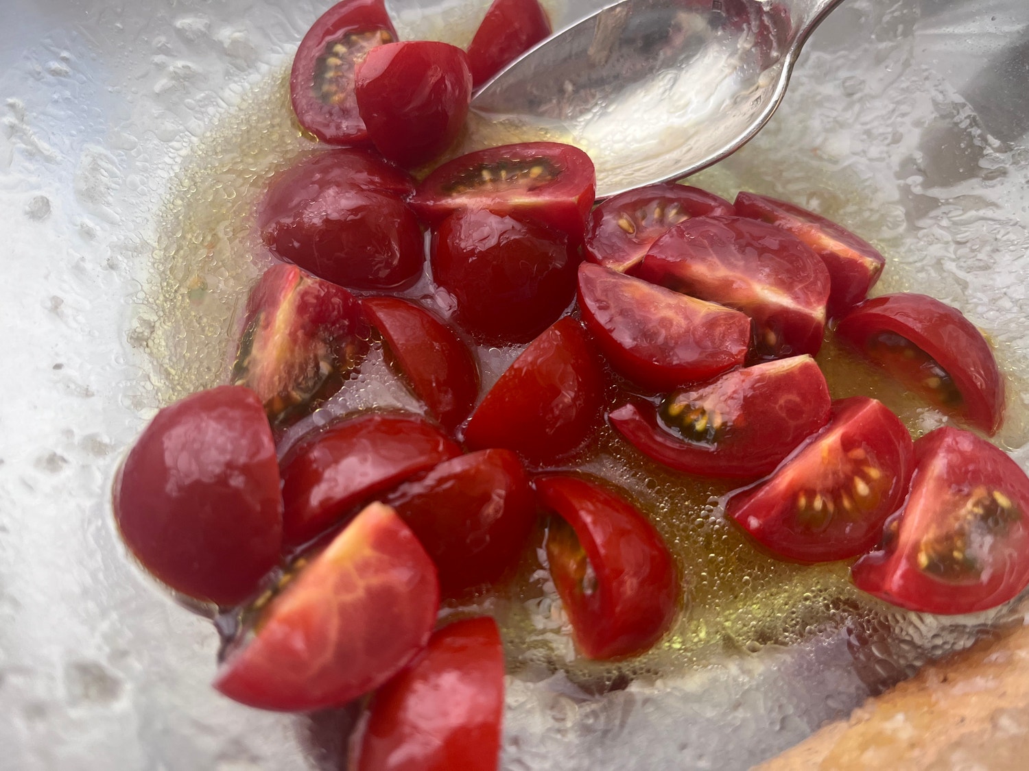 軽くトマトに塩をして混ぜてから、新玉ねぎのドレッシングをたっぷりと入れてさらに混ぜます。これが今回のソースになります。